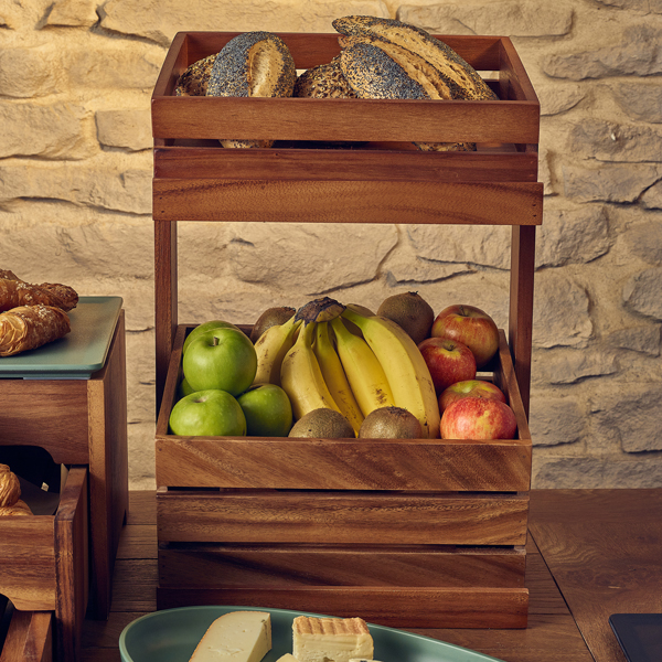The GenWare Acacia Wood GN Crates combine natural aesthetics with functional design, making it a versatile addition to any buffet or countertop display. With its GN footprint, it integrates seamlessly with other Gastronorm compatible items, offering a cohesive and professional look. Whether used as a box for holding items or flipped over as a riser to elevate presentation, this dual purpose piece is ideal for showcasing everything from pastries and plated dishes to condiments and cutlery.