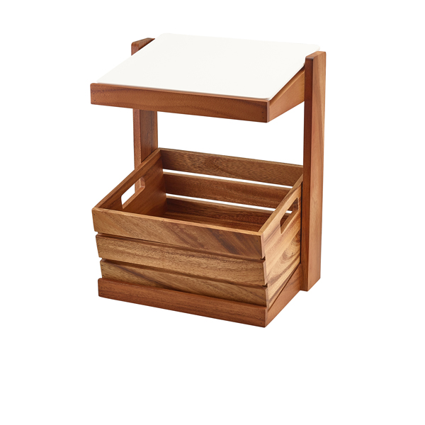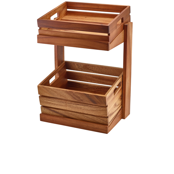 The GenWare Acacia Wood Crate Stand brings together rustic charm and practical design, making it ideal for stylish food presentation in hotels, cafes, and buffet settings. Crafted from durable acacia wood with a rich natural grain, this two tier stand is designed to hold GN 1/2 crates, offering a flexible and organised way to display baked goods, fresh produce, or grab and go foods. Its GN 1/2 footprint ensures easy integration with other GN compatible buffetware, delivering a consistent and professional presentation.