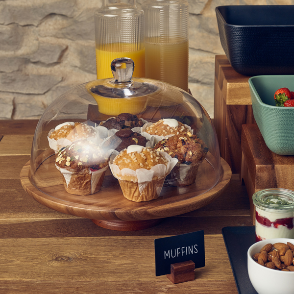 Bring natural charm and elevated presentation to your dessert displays with the GenWare Acacia Wood Cake Stand. Crafted from rich, durable acacia wood, this stand provides the perfect platform for showcasing cakes, pastries, or afternoon tea selections. Its warm tones and unique grain patterns add rustic elegance to any table, buffet, or countertop, making it a standout feature for hotels, cafes, and bakeries.