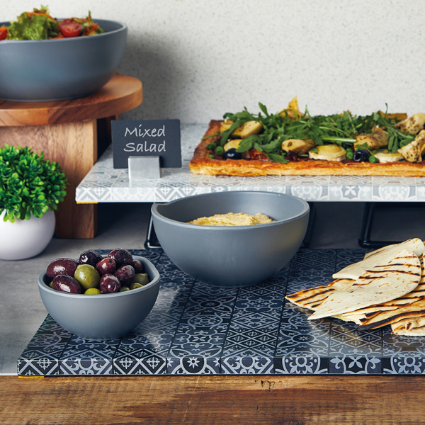 Our Marrakesh collection, inspired by traditional Moroccan mosaic tiles and available in a range of striking colours. Crafted from 100% premium melamine, our Marrakesh Moroccan buffet bowls and display slabs come in a variety of shapes and sizes. These pieces are not only robust and dishwasher safe but also feature a creative mix of decorative patterns, geometric designs and efflorescent motifs. Perfect for adding a touch of inspiration to any buffet.