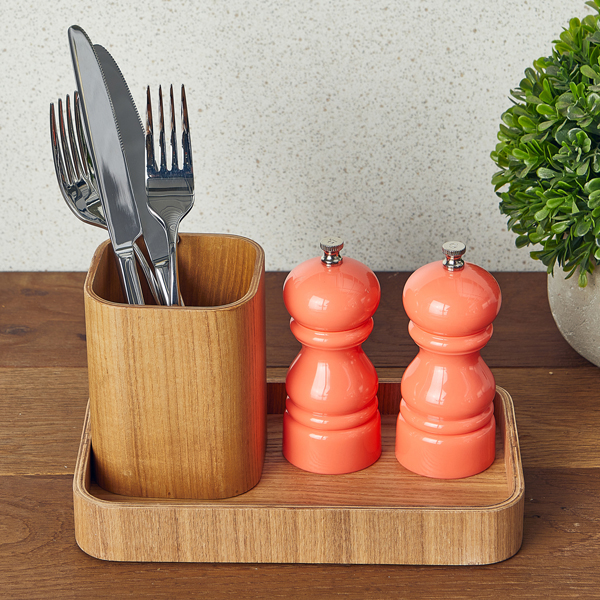 GenWare Acacia Wood Salt & Pepper Grinder Stand