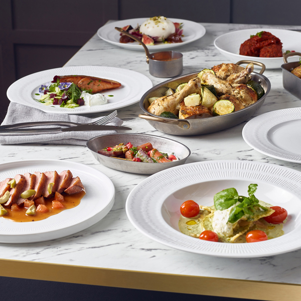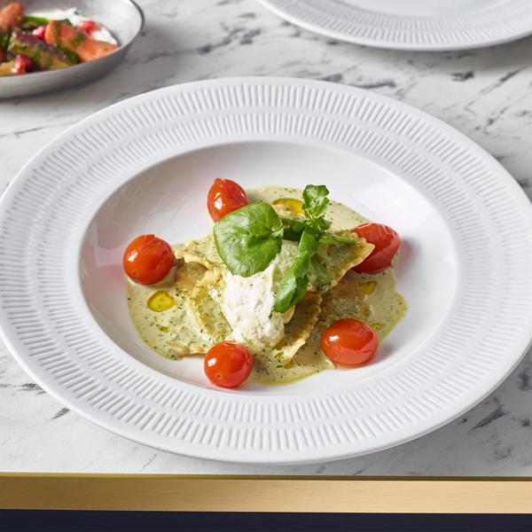 The Incise Porcelain Solara collection features an elegant series of gourmet dishes, adorned with a sumptuous embossed design, adding texture and sophistication to food presentation. Perfect for upscale settings, this range blends striking aesthetics with practical design, allowing chefs to create visually stunning and memorable presentations for any occasion.